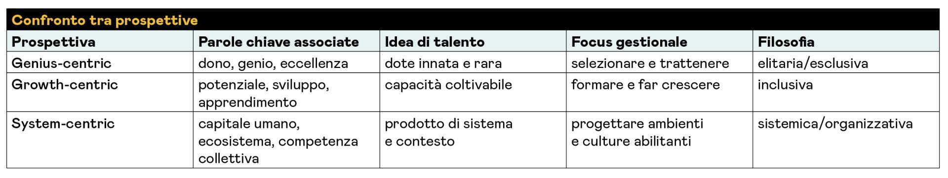 La via d’uscita non è teorica, è organizzativa: ruoli chiari, criteri coerenti, reale possibilità di mobilità, investimenti nelle competenze e negli strumenti. È l’idea del talento come risultato di un sistema, già sostenuta da Henry Mintzberg: il talento non è solo una qualità individuale, ma il frutto di un contesto che lo fa emergere (Tabella 1).