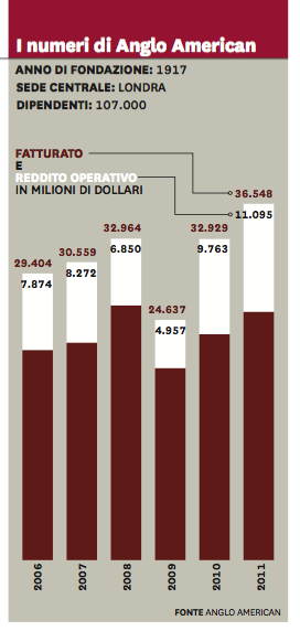 Il lavoro che abbiamo fatto ha prodotto risultati enormi. In collaborazione con il Dipartimento delle Risorse Minerarie e con le maggiori organizzazioni sindacali, Anglo American ha migliorato considerevolmente il livello di sicurezza. Nel 2011 hanno perso la vita nelle nostre strutture operative 17 persone contro le 44 del 2006, anno del mio arrivo, con una riduzione del 62 per cento. Le ore lavorative perse per infortunio sono diminuite di oltre il 50%. Tutto questo ha avuto una ricaduta positiva su tutto il settore: nelle miniere sudafricane gli incidenti mortali si sono ridotti complessivamente del 25% circa.
