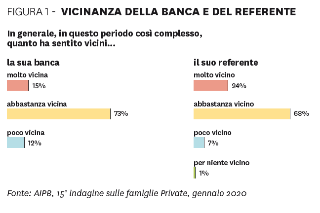 Da quanto emerge dalla 15° indagine AIPB sulle famiglie private, che interroga i clienti sul servizio ricevuto nel 2020, risulta che, in generale, sia la banca, sia il consulente sono riusciti a dimostrarsi vicini ai clienti durante la pandemia. Va però osservato che i clienti con patrimoni importanti partono da un grado di soddisfazione molto alto circa la relazione con il proprio consulente (Figura 1).
