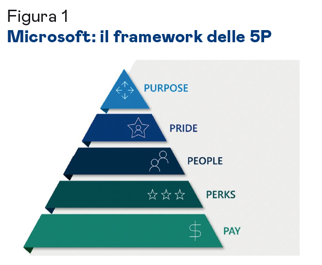 Per dare corpo a questo metodo, è stata ridefinita la piramide dei bisogni di Maslow, creando il framework delle 5P – Pay, Perks, People, Pride and Purpose (retribuzione, vantaggi, persone, orgoglio e purpose, figura 1) – che mette in ordine crescente le leve per arrivare al thriving. Alla base vi è naturalmente la struttura retributiva, ma poi contribuiscono incrementalmente alla fioritura le gratifiche integrative, una maggiore libertà a gestire e pianificare la dimensione umana legata al lavoro, per poi arrivare all’orgoglio – potente motore di appartenenza che diffonde autenticità e crea anche comportamenti imitativi – fino al collante più importante: fare proprio il purpose aziendale traducendolo in un progetto personale.