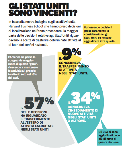 È difficile ottenere risposte definitive su come si posizionano gli Stati Uniti a livello di scelte individuali di localizzazione. Il Governo americano rileva il numero di imprese che aprono un'unità produttiva in America ma non è in grado di stabilire se quell'attività si sarebbe potuta ubicare altrove. E non ci sono statistiche ufficiali in grado di documentare quali altre location, eventualmente, sono state prese in considerazione o perché ne è stata preferita una all'altra.