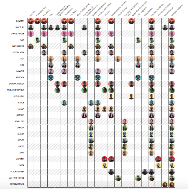Spesso, le organizzazioni sono restie ad abbandonare ciò che ha reso vincente un prodotto creativo. I registi dei Marvel Studios, però, parlano tutti della volontà di lasciar andare gli ingredienti vincenti dei film precedenti. Peyton Reed, regista di Ant-Man and the Wasp, ha raccontato nel 2018 di come il suo film si allontanasse da quelli immediatamente precedenti (Black Panther e Avengers: Infinity War): «Volevamo rimanere all'interno del genere crime in termini di struttura e guardare a cose come i romanzi di Elmore Leonard e film come Fuga di mezzanotte e Fuori orario […] Abbiamo sempre saputo che saremmo usciti dopo Panther e Infinity War [...] Pensavamo tutti 'Ok […] questo sembra naturale rispetto a ciò che stavamo già facendo, ma sarà anche un contrasto netto rispetto a ciò che è venuto prima». Per capire se si trattava di qualcosa di più che una serie di belle parole, abbiamo analizzato tutti i film dell'Universo cinematografico Marvel per cercare delle prove del loro essere ripetitivi. Le persone stavano davvero guardando ogni volta lo stesso film? All'inizio, la risposta sembrava positiva: tutti i film Marvel contengono supereroi, cattivi e una terza parte rappresentata da battaglie culminanti che, spesso, si basano pesantemente su effetti generati al computer. Ogni film ha poi un cameo dello scomparso Stan Lee, che ha scritto molti dei fumetti originali. Un'osservazione più attenta, però, ha svelato qualcosa di più complesso. Noi viviamo i film tramite la drammaturgia che sviluppano e la storia visiva che raccontano. Per capire queste dimensioni, abbiamo condotto un'analisi informatica testuale dei dialoghi di ogni film e un'analisi visuale delle immagini. Abbiamo anche esaminato gli elementi che i critici più autorevoli hanno evidenziato come sfidanti o nuovi rispetto al genere supereroistico. Il nostro scopo era quello di capire meglio se i film differissero in termini di elementi drammatici, visivi e narrativi. La nostra analisi delle sceneggiature rivela che i film Marvel presentano tonalità emotive differenti (l'equilibrio fra emozioni positive e negative espresse verbalmente dai personaggi). Iron Man 2, per esempio, contiene molto umorismo, compresa una scena in cui Nick Fury dice ad Iron Man, seduto dentro a una grande ciambella che funge da insegna per una tavola calda: «Signorino, devo pregarti di uscire dalla ciambella!». Nel film successivo, invece, Thor, tutto centrato sulla delusione che il padre nutre nei suoi confronti e dalla cui vista viene allontanato, è più oscuro e triste.